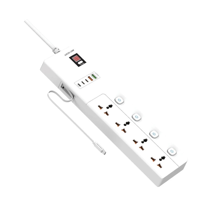 خروجی ها : ۴ عدد خروجی یونیورسال - ۳ عدد USB-C و ۲ عدد USB-A و ۱ عدد کابل جمع شونده Type - C